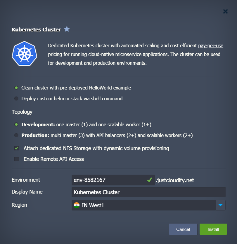 Get your Kubernetes instance up and running within minutes using JustCloudify one-click installation